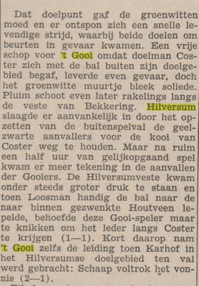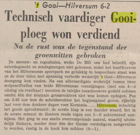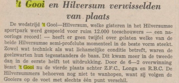Het bleek de aanzet tot een heel vreemd jaar waarin de uitslagen zowel positief als negatief een doelpunten festijn waren. Een paar maanden later hersteld de selectie het aanzien enigszins door, uit in IJmuiden, Stormvogels op 1-1 te houden. Het meest bijzondere is dat seizoen dat FC Hilversum uiteindelijk nog op een vierde plaats eindigt maar natuurlijk achter kampioen Stormvogels.